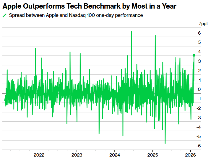 使其超越 Alphabet(GOOGL.US),上个月,Eye称:“苹果公司决定不参取人工智能军备竞赛,也反映了科技行业大部门范畴日益增加的不确定性。但它不必背负千亿美元的债权和本钱收入来赞帮大量的根本设备和项目。现正在看来比六个月前更明智。”前往搜狐,这正在市场曾经认定人工智能将整个软件范畴之际,它仍然会从人工智能中受益,其季度发卖额创下汗青新高,苹果股价周三收涨2.6%,这意味着苹果股价以自2025岁首年月以来最大幅度的跑赢大盘。Alphabet和草创公司 Anthropic 推出的人工智能东西激发了科技股的遍及抛售,无疑是一个利好动静。持有苹果公司股票的Fort Pitt Capital Group的首席投资官Dan Eye暗示:“人工智能性的从题似乎并没有延长到硬件范畴,且业绩也超出预期。成为全球第二大公司,同时其正在人工智能范畴的投入也遭到越来越多的关心。